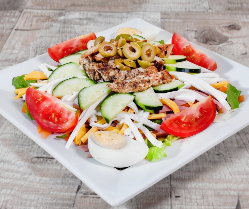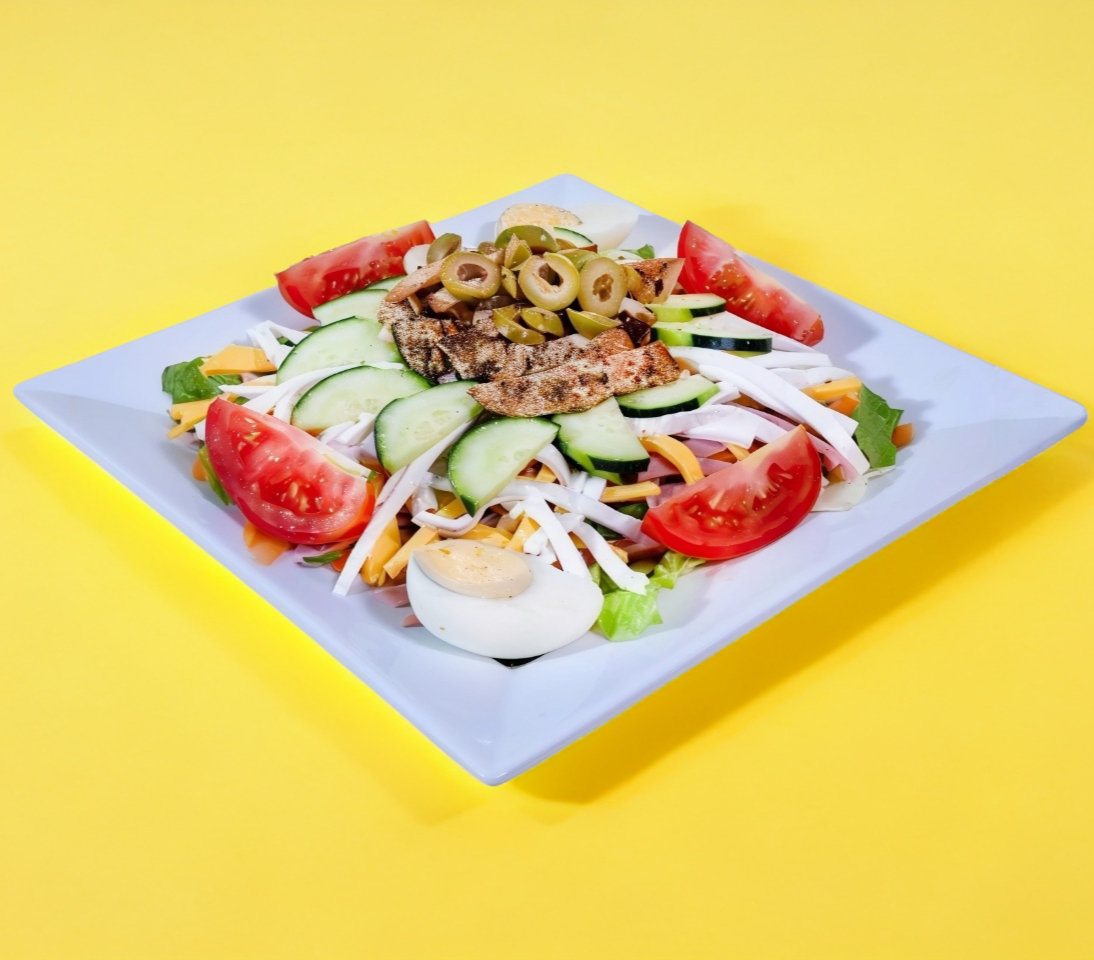2 Porciones PV (100 g cada una), fajita de pollo y lechuga mixta.