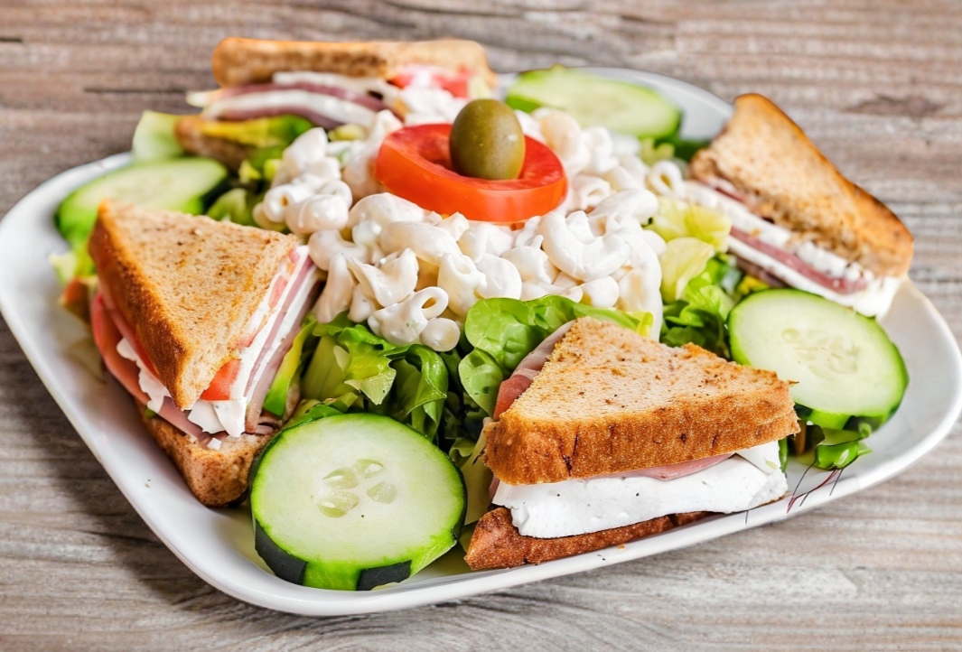 1 Porción PAS (100 g), 1 porción PV (100 g), crema de brócoli ó papa con tocino y lechuga mixta.