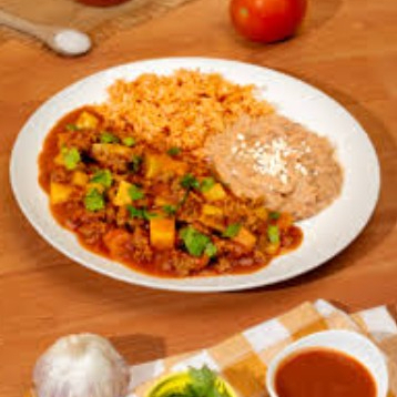 Chile renello de carne, tu guiso y guarnición. Incluye coca cola de 355ml.