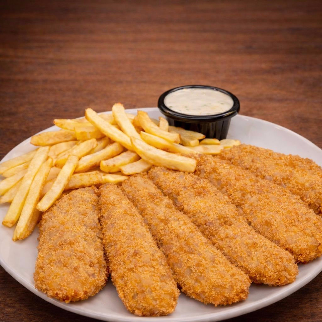 Ideal para compartir entre 2 personas; proteína de filete empanizado (si deseas cambiarla por otra es con costo extra), acompañada de papas fritas y aderezo.