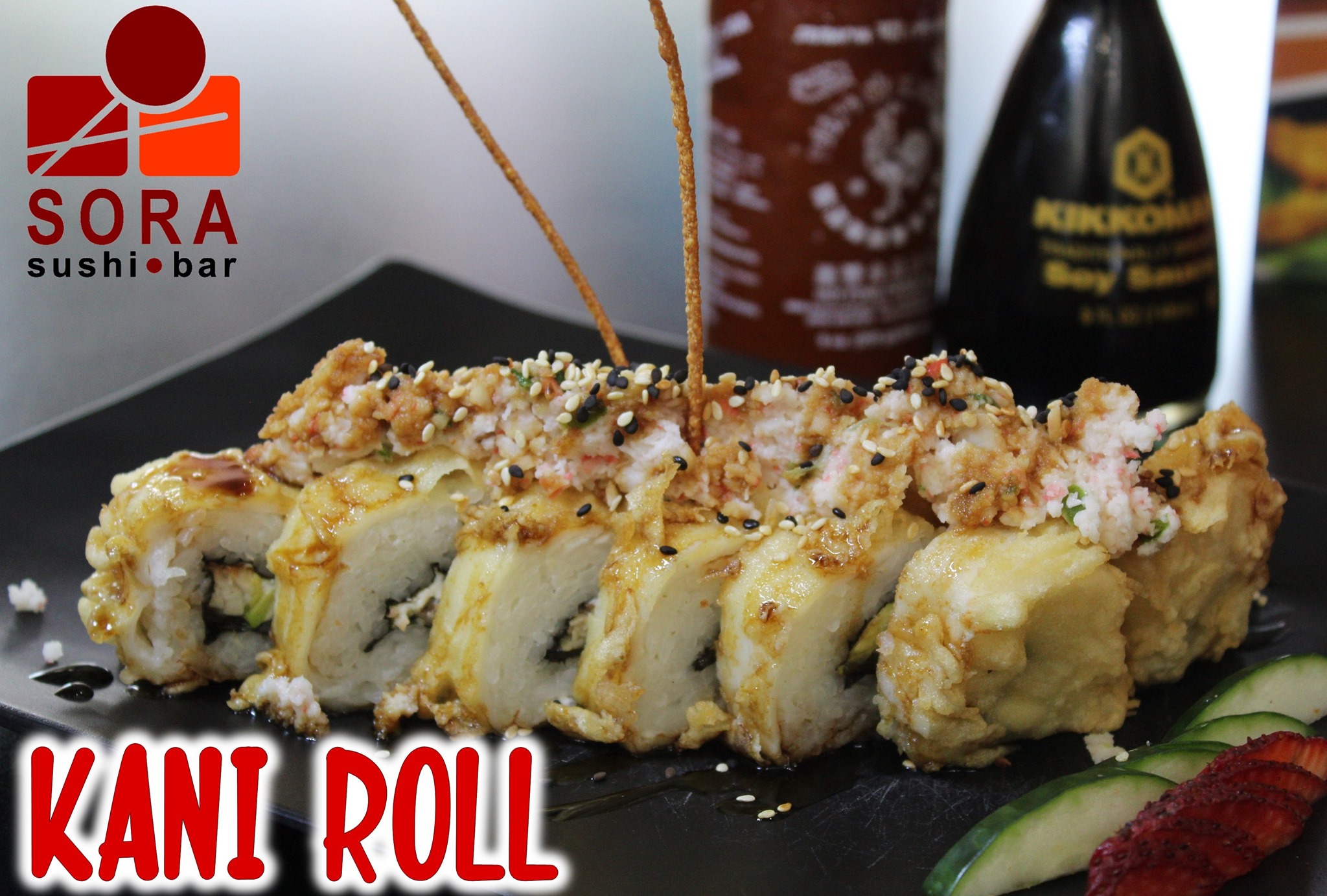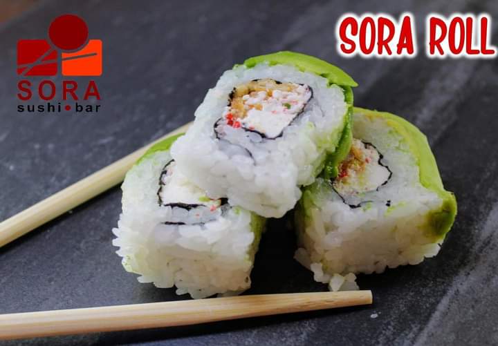 Anguila, aguacate y philadelphiapor dentro, cangrejo por fuera, capeado con pasta tampico arriba, salsa de anguila y ajonjolí.