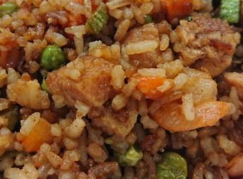 Arroz frito con zanahoria, calabaza y 2 proteinas a elegir.