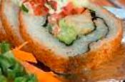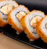 Camarón, Philadelphia y aguacate por dentro; surimi por fuera empanizado, con tampico arriba, salsa de anguila y ajonjolí.