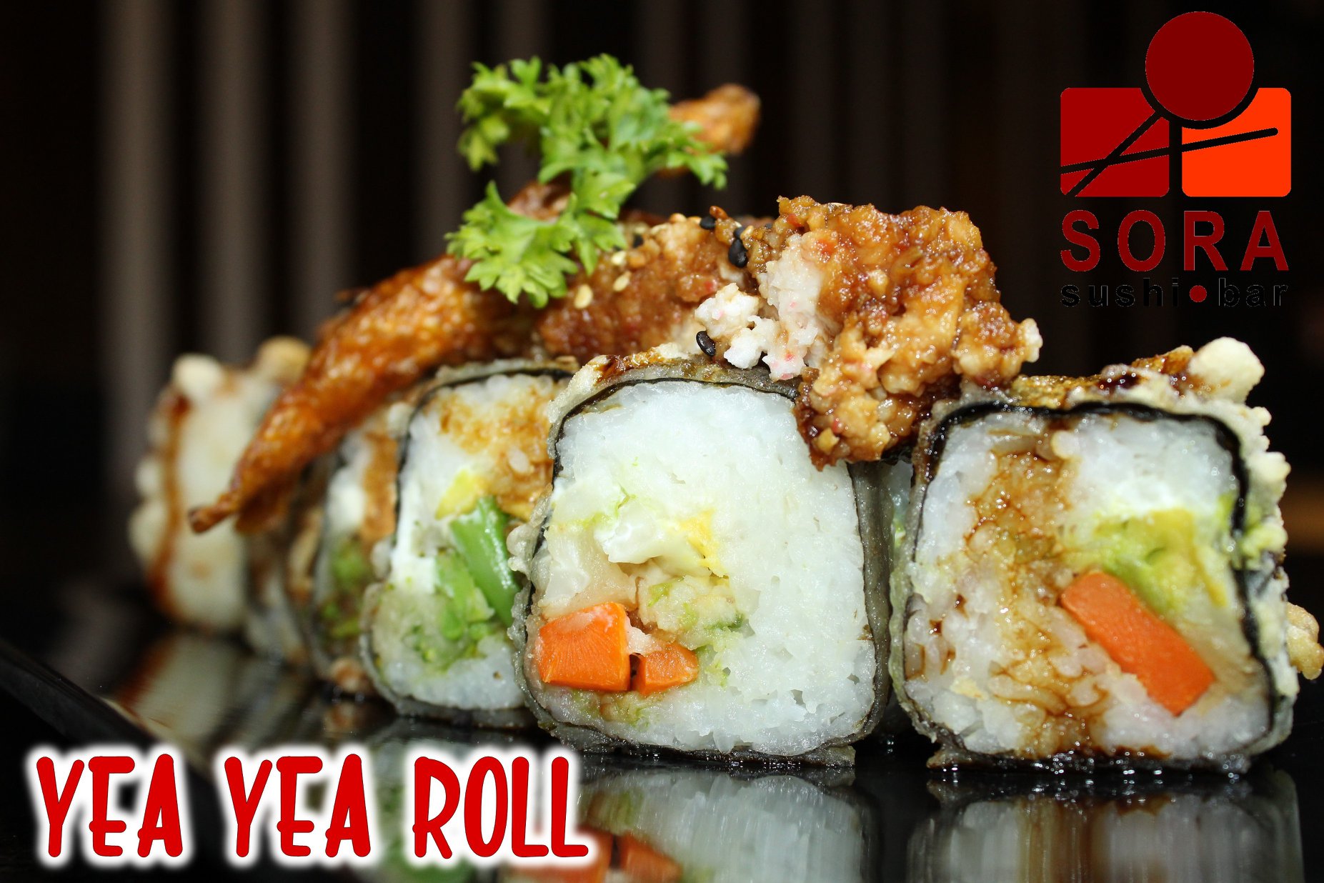 Verduras Capeadas, aguacate, philadelphia por dentro: capeado con pasta tampico arriba, salsa de anguila y ajonjolí.
