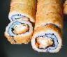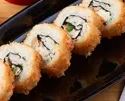 Camarón, aguacate, philadelphia por dentro; empanizado, con salsa de anguíla y ajonjolí.
