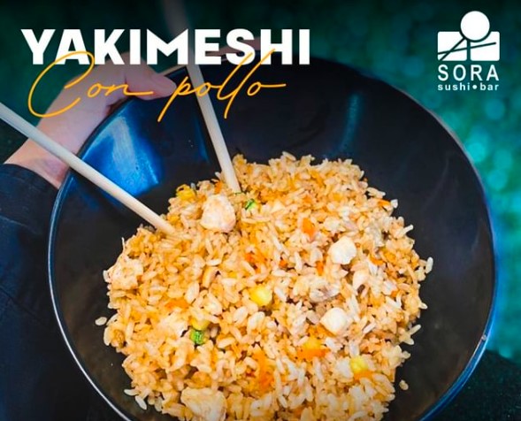 Arroz frito con zanahoria, calabaza y 2 proteinas a elegir.