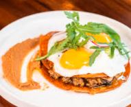 Chilaquiles Rojos con Huevo Verde y Frijoles