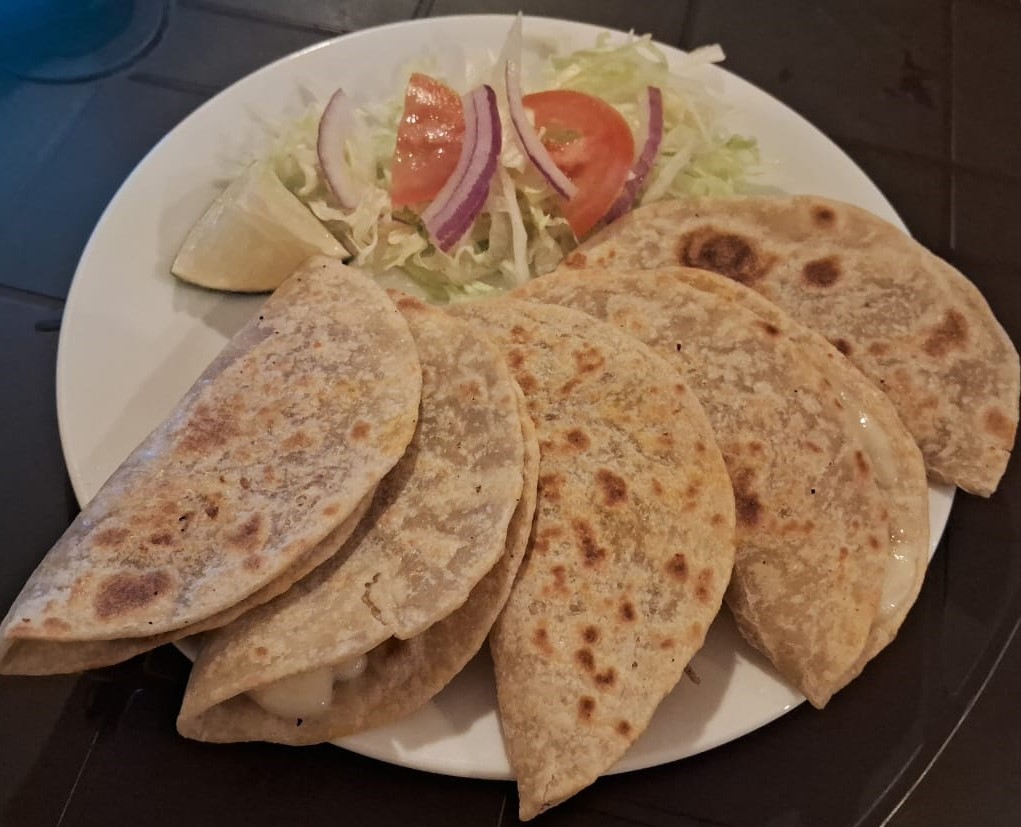 5 Quesadillas de harina, acompañadas de deshebrada o chorizo