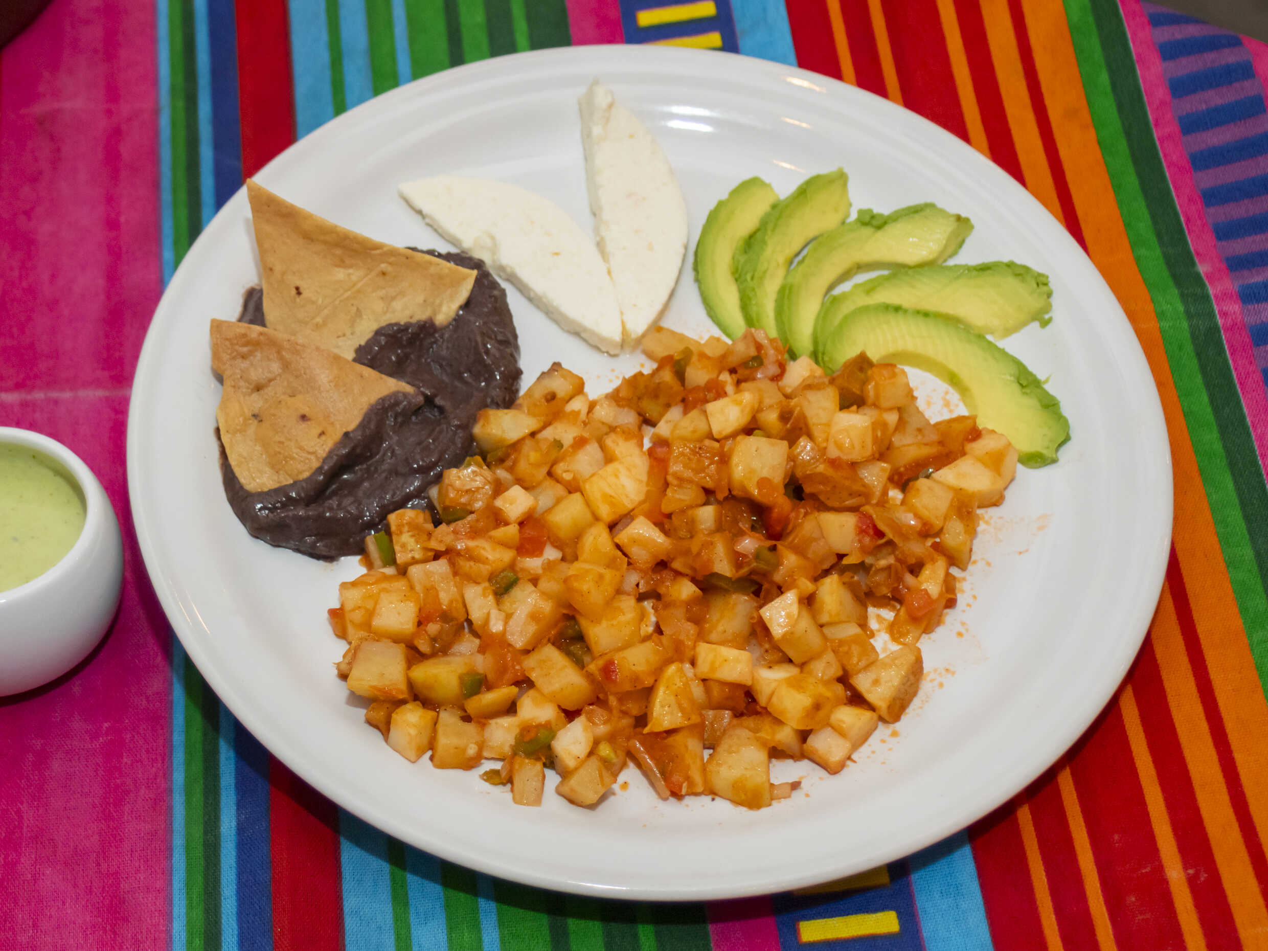 A la mexicana, acompañadas de frijoles, aguacate, 5 Tortillas y queso.