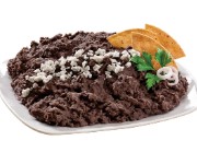 Botana para 1-2 personas. 250gr de frijoles negros con la receta de Taco Roll, deshebrada y 100 gr de totopos.
