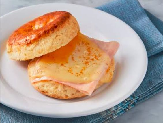 Delicioso Bisquete con mantequilla, jamón 100% de pierna y queso chihuahua.