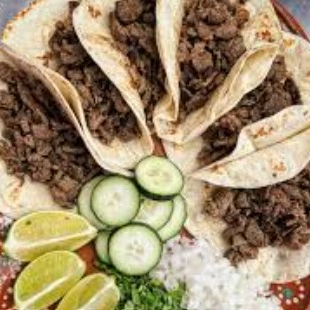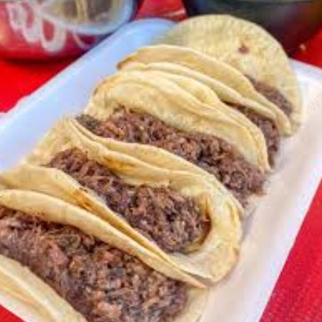 (1) Piza de tortilla de harina jugosa carne asada al carbón envuelta en tortilla de harina calientita, con cebolla, cilantro y un toque de limón. Sabor irresistible.
