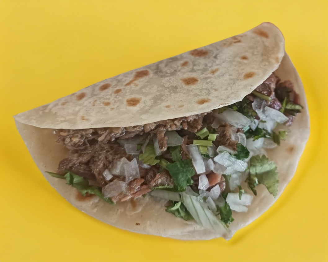 Delicoso Taco de tortilla de harina recien hecha, eligelo de tu guiso favorito.
