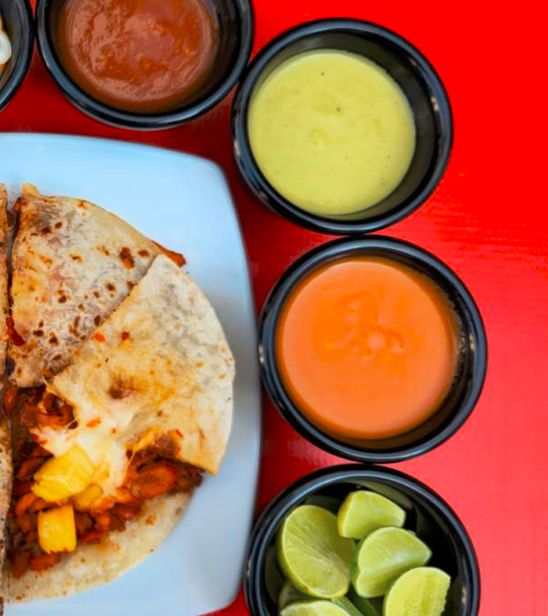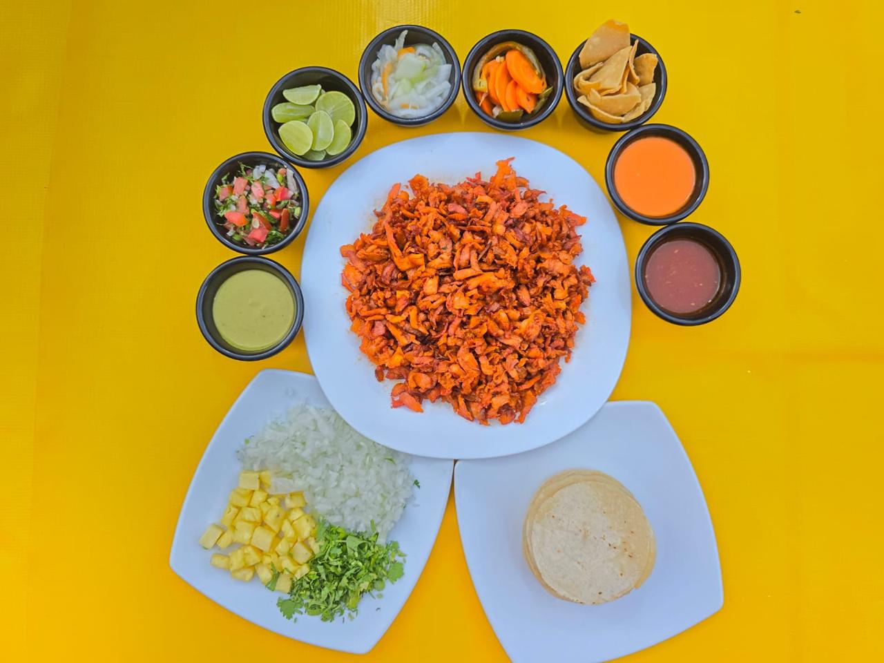 Fajita, pastor, jamón, piña, tocino, morrón, cebolla, queso y aguacate (platillo para 2 personas, incluye 20 tortillas de maíz).