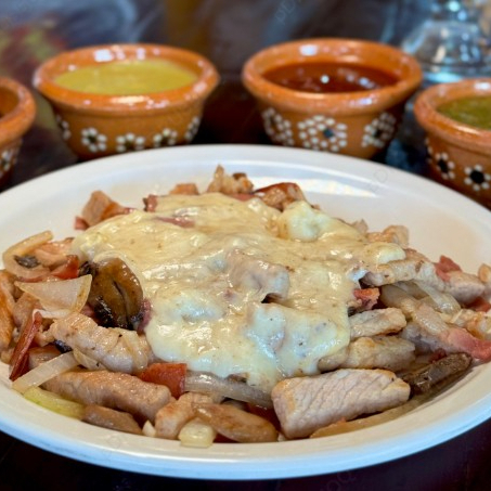 Fajita, chorizo, queso gratinado y 10 tortillas de maíz.