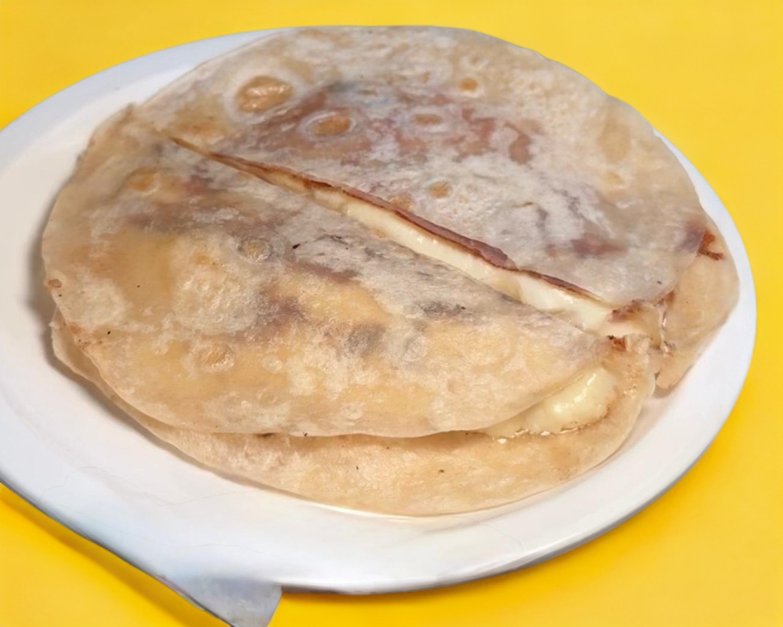 Jamón y queso cubierto por 2 tortillas de harina