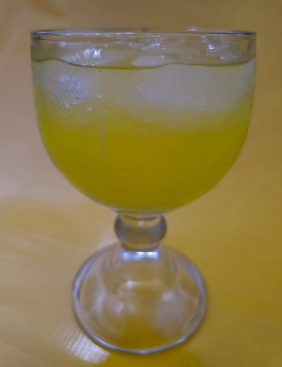 Tortilla de harina, queso amarillo y jamón, partida en 4 partes.