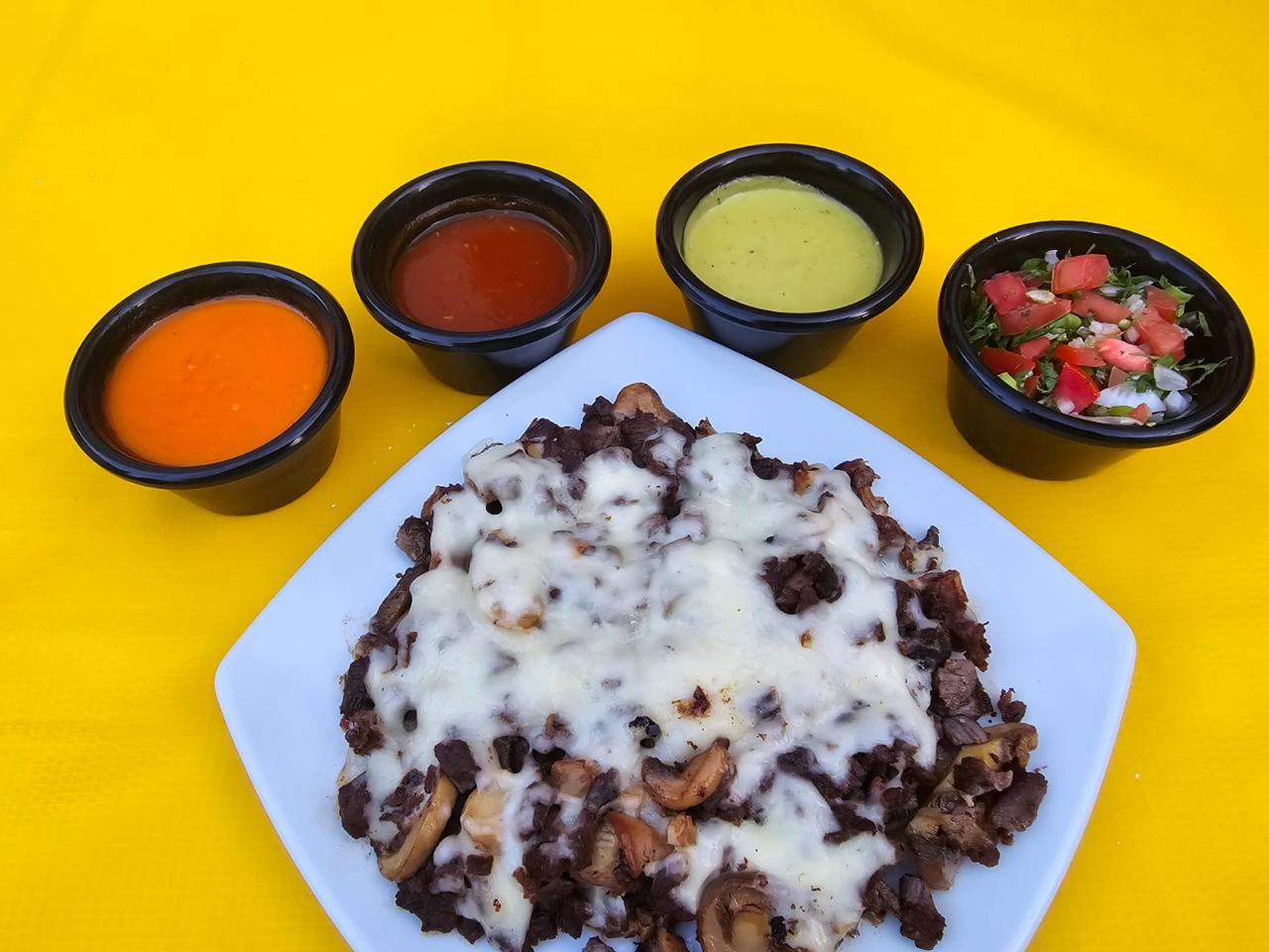 Fajita, queso y champiñones (platillo para 2 personas, incluye 20 tortillas de maíz).