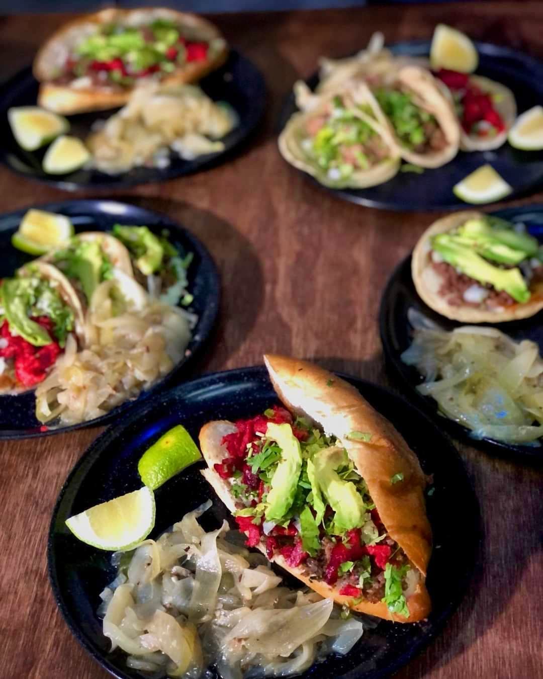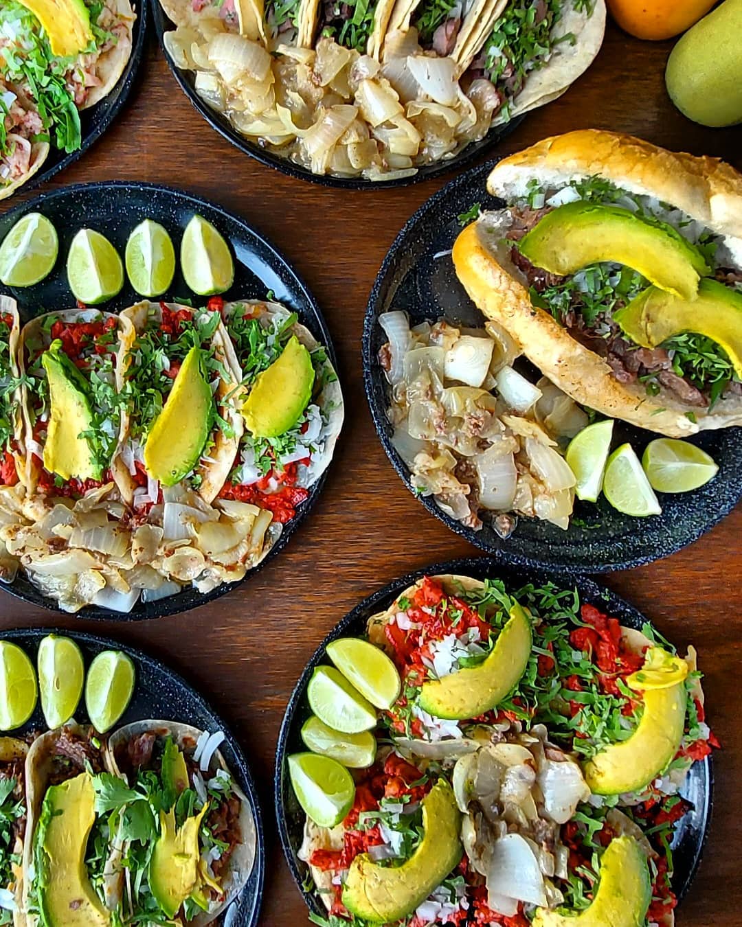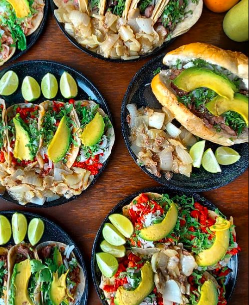 4 Gringas de Bistec acompañadas de cebolla asada, cilantro, aguacate y cebolla cruda