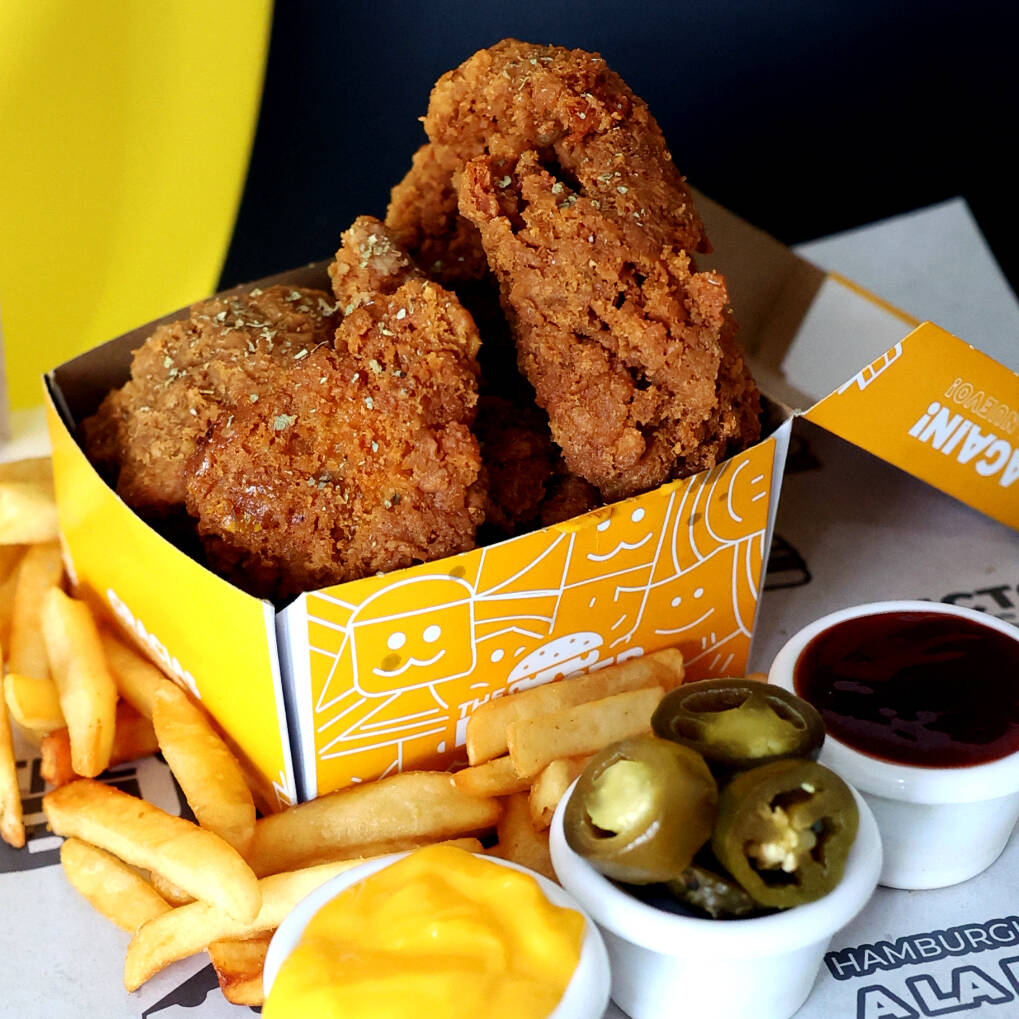 Preparado con: 3 tiras de pollo, 2 rebanadas de queso Monterey Jack, salsa BBQ y pan tostado Texas Toast. Incluye porción de papas a la francesa.
