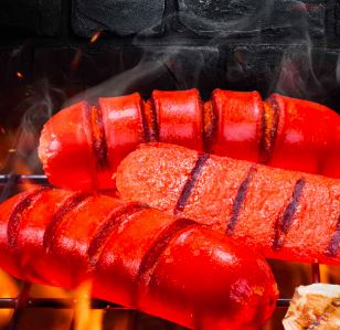 Rico salchichón asado preparado a las brasas por Tío Pollo