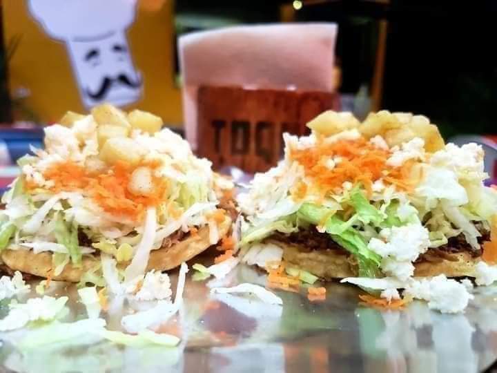 4 Sopes con lechuga, queso y verduras.