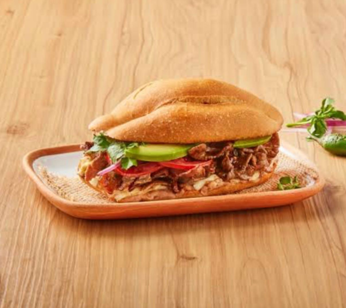 Torta Especial de Ternera*1 + Agua de Jamaica Lto. de flor de Jamaica natural.*1