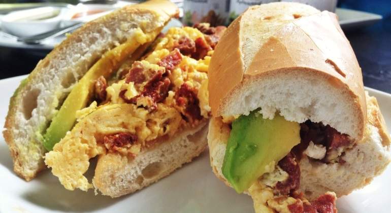 De quesito panela. Elaborada con mayonesa, frijoles, aguacate, cebolla y tomate.