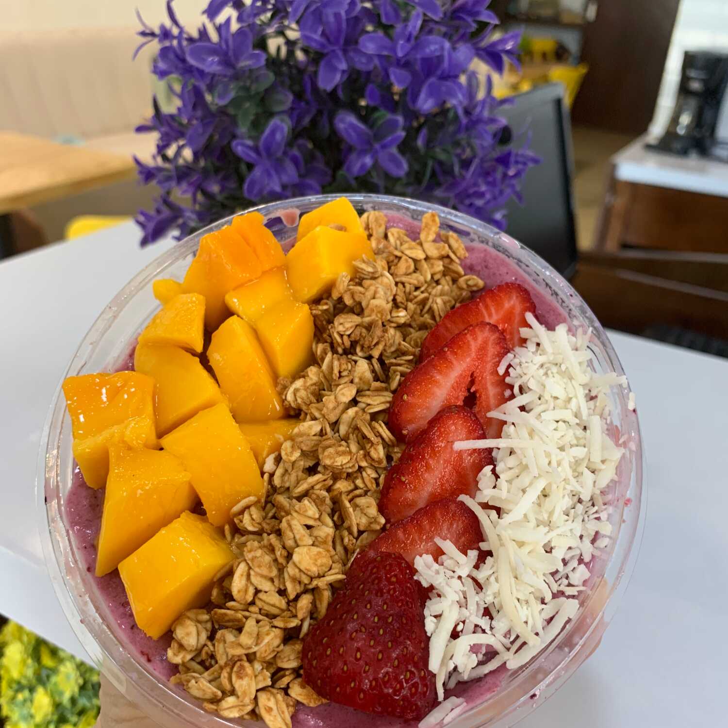 Mix de frutos rojos, platano, acai, yogurt griego sin azúcar , granola, coco rayado y fruta de temporada.