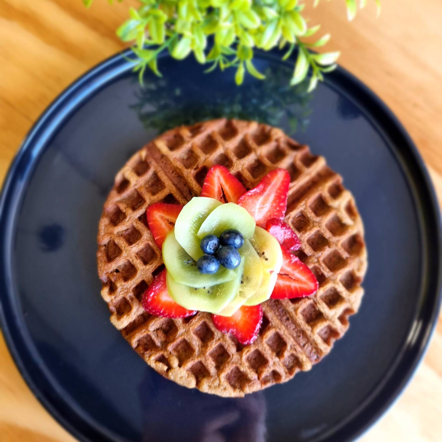 Preparado con nuestra harina de avena de la casa con un toque de cacao, servido con fruta de temporada y miel de maple o de miel de agave.