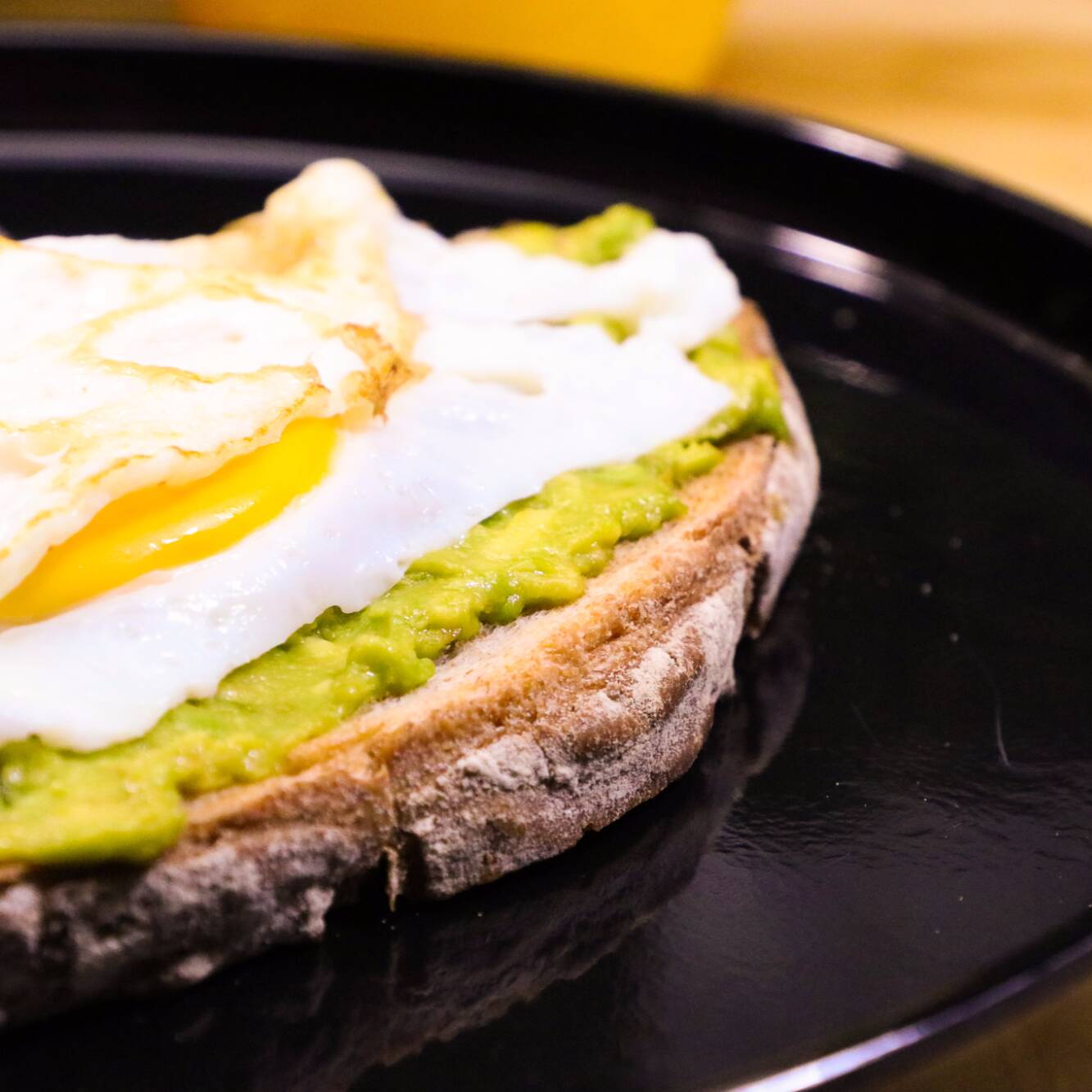 Dos piezas de pan artesanal, aguacate con dos piezas de huevo perfecto acompañado de nuestra salsa de semillas.