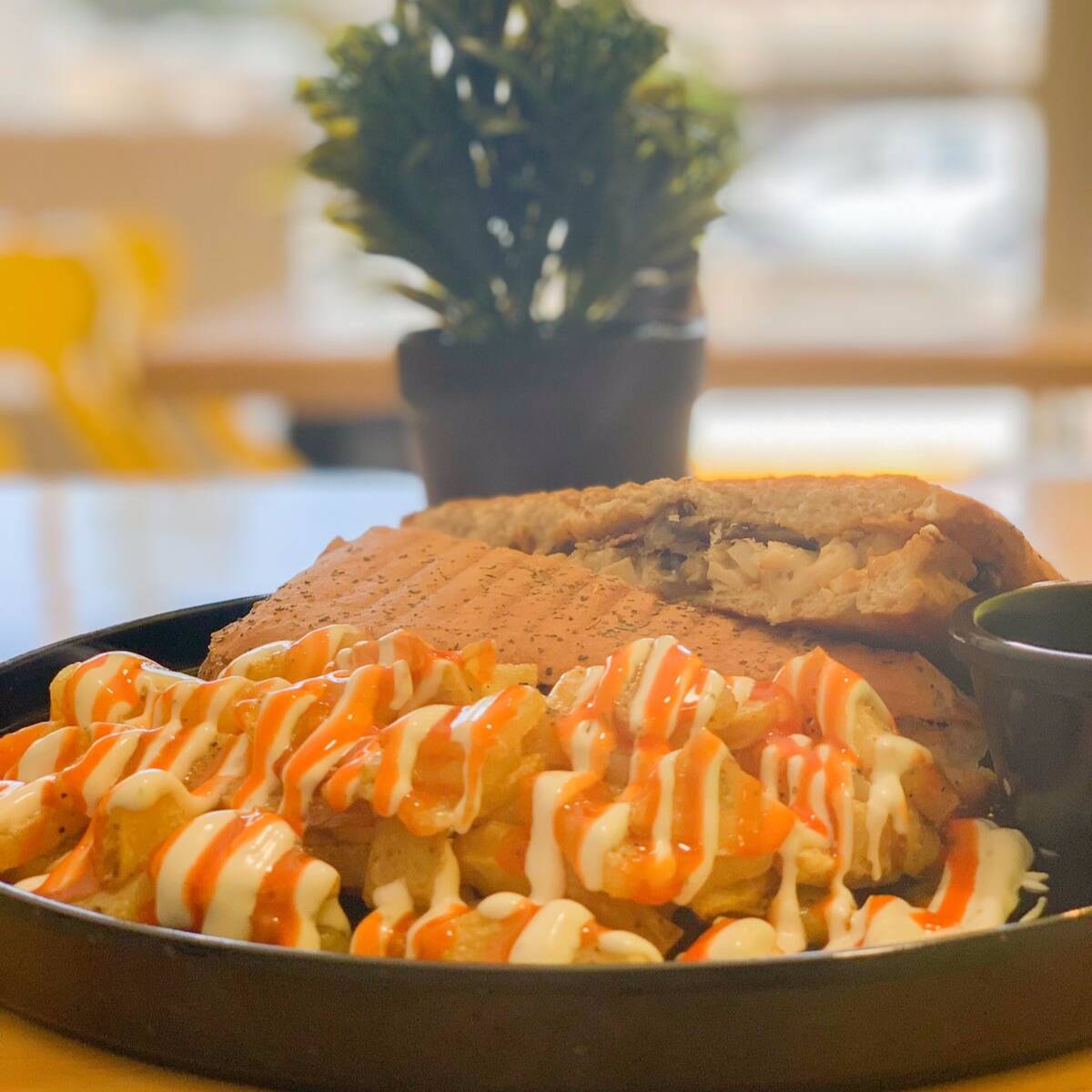 Pollo a la plancha, champiñones, tocino, queso mozzarella y aderezo chipotle de la casa en nuestro pan artesanal.
