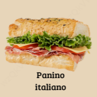 Panino de pan artesanal, con aderezo de la casa, mix de lechugas y jamón serrano.