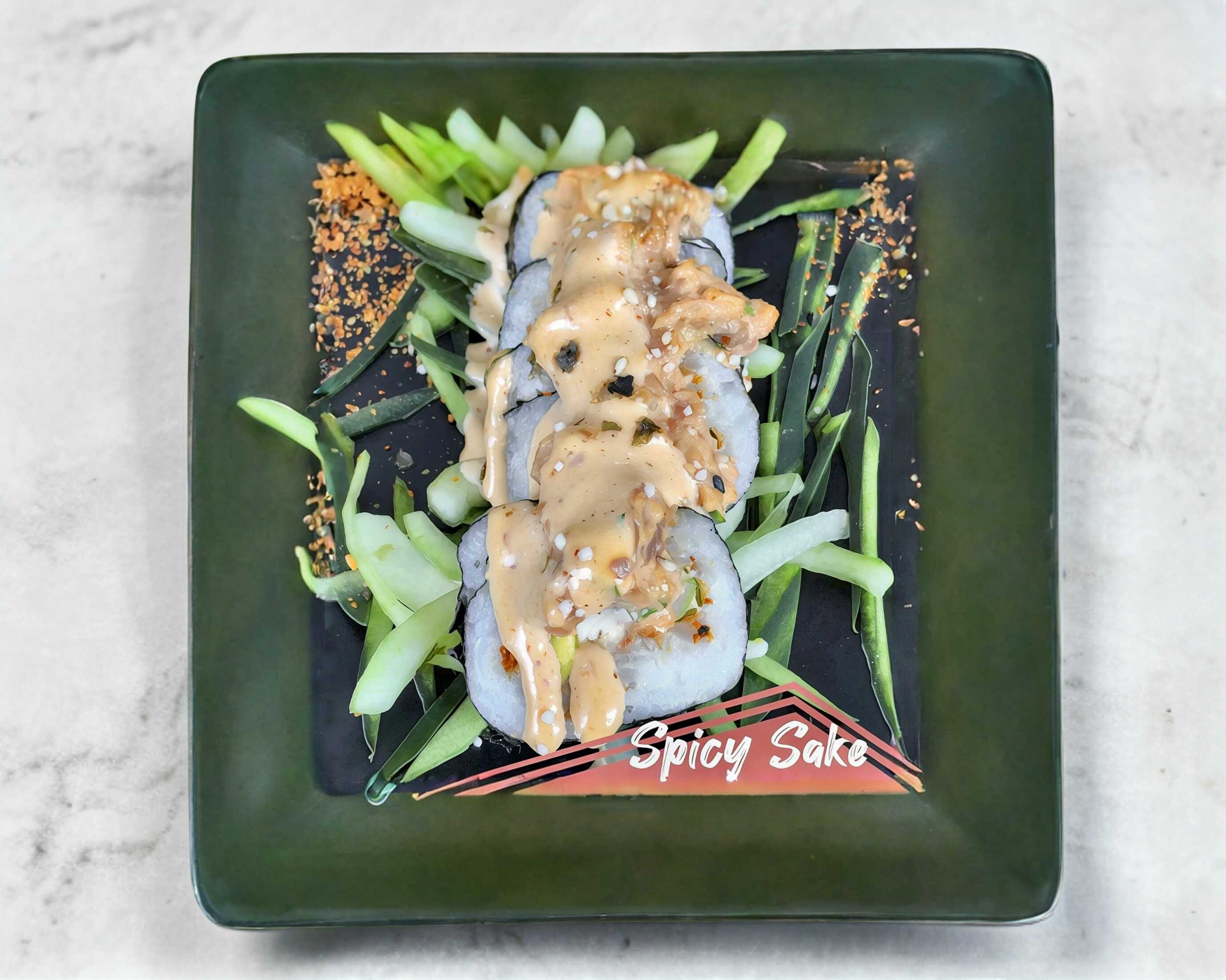 Rollito tempura relleno de salmón y queso crema, frito y acompañado de salsa chipotle.