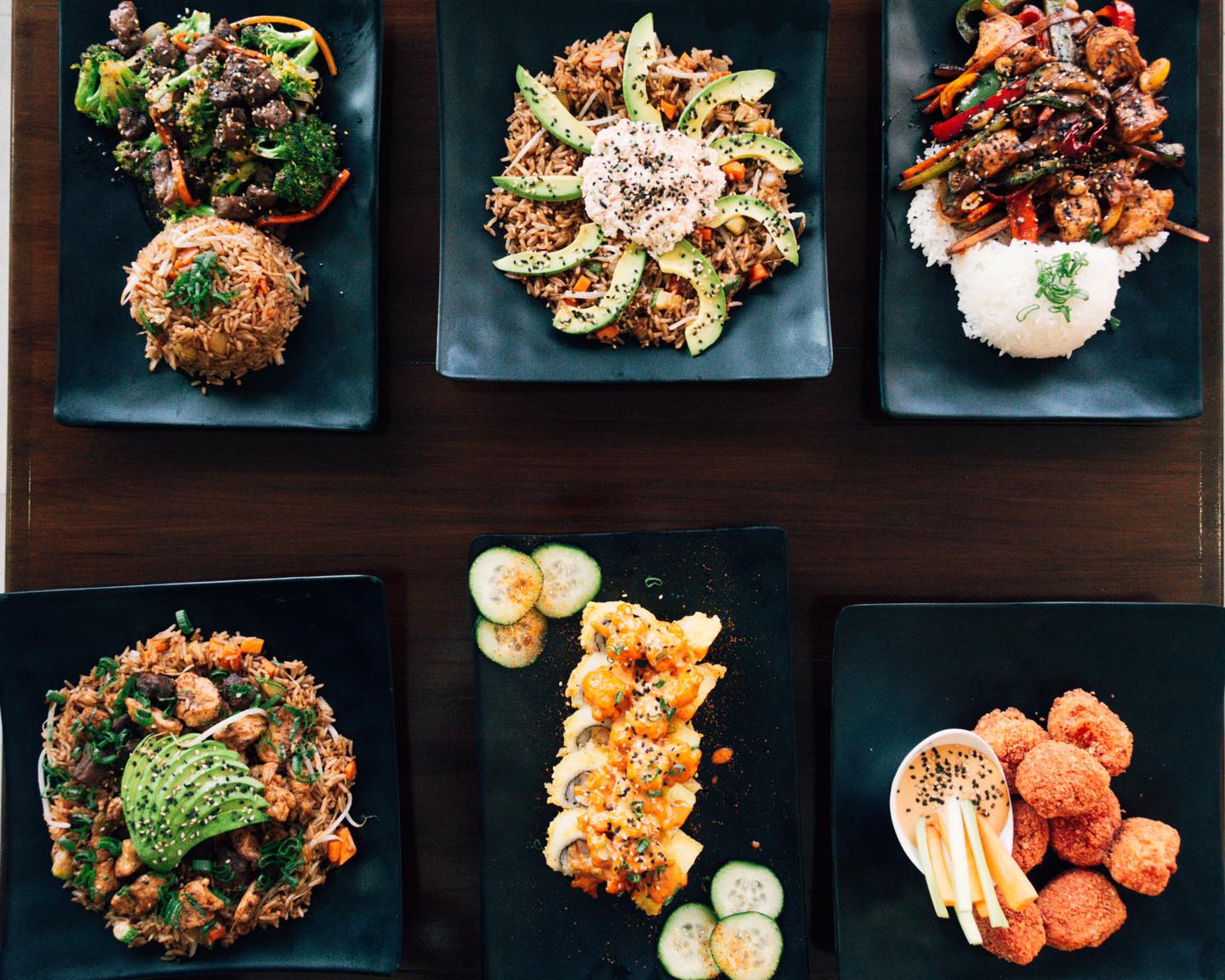 Arroz frito con mix de verduras, carne de res, pollo y camarones.