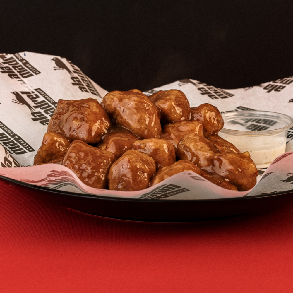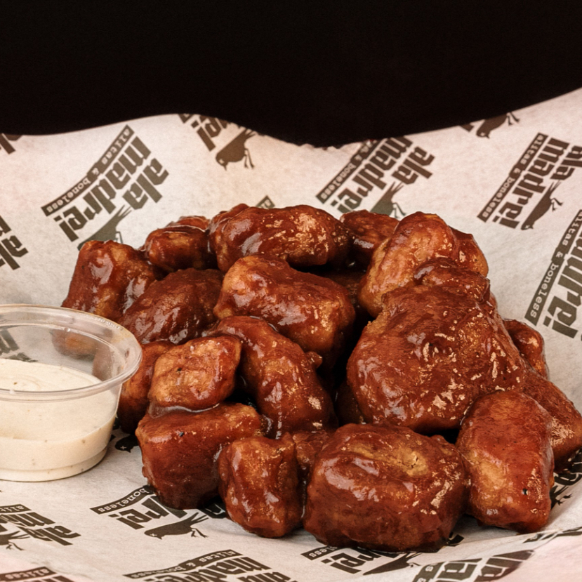 240 gr de trocitos de pechuga de pollo crujiente por fuera, jugosos por dentro, bañados en tu salsa favorita. (max. 1 salsa)