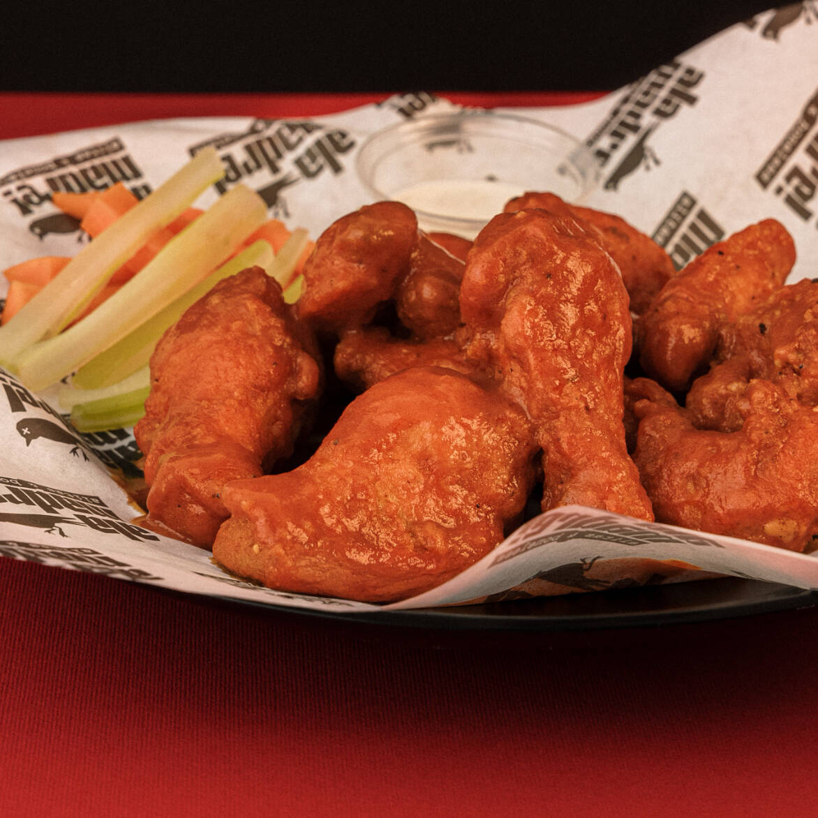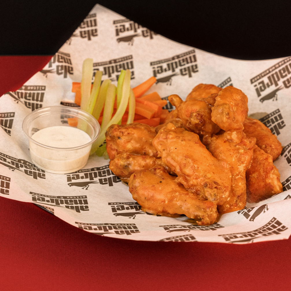 400 gr de Alitas de pollo doraditas y jugosas, bañadas en tu salsa favorita. (max. 1 salsa)