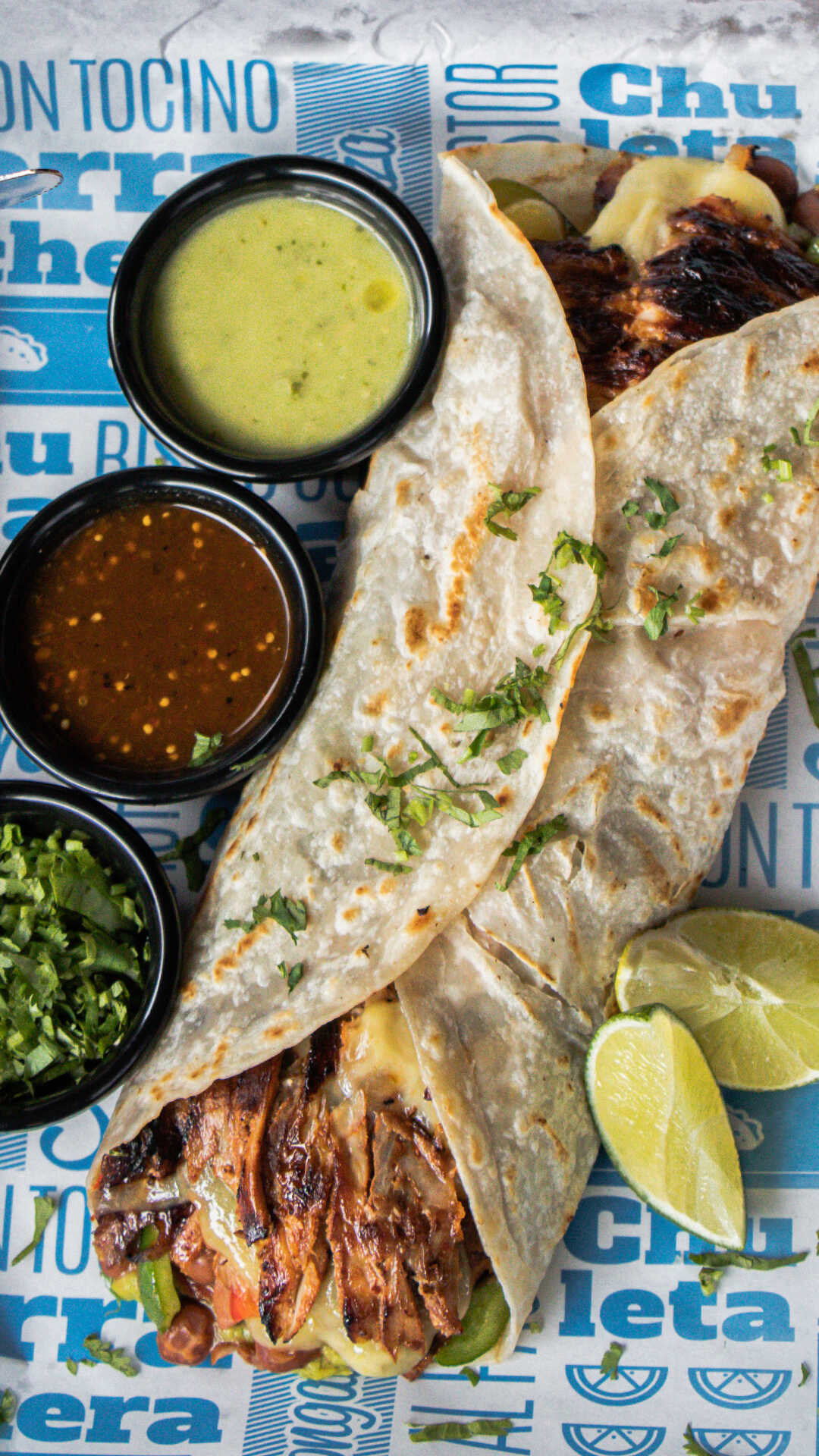 Nuestra gigante tortilla de harina rellena con tu carne favorita y el gran sabor de nuestro queso bien derretido.