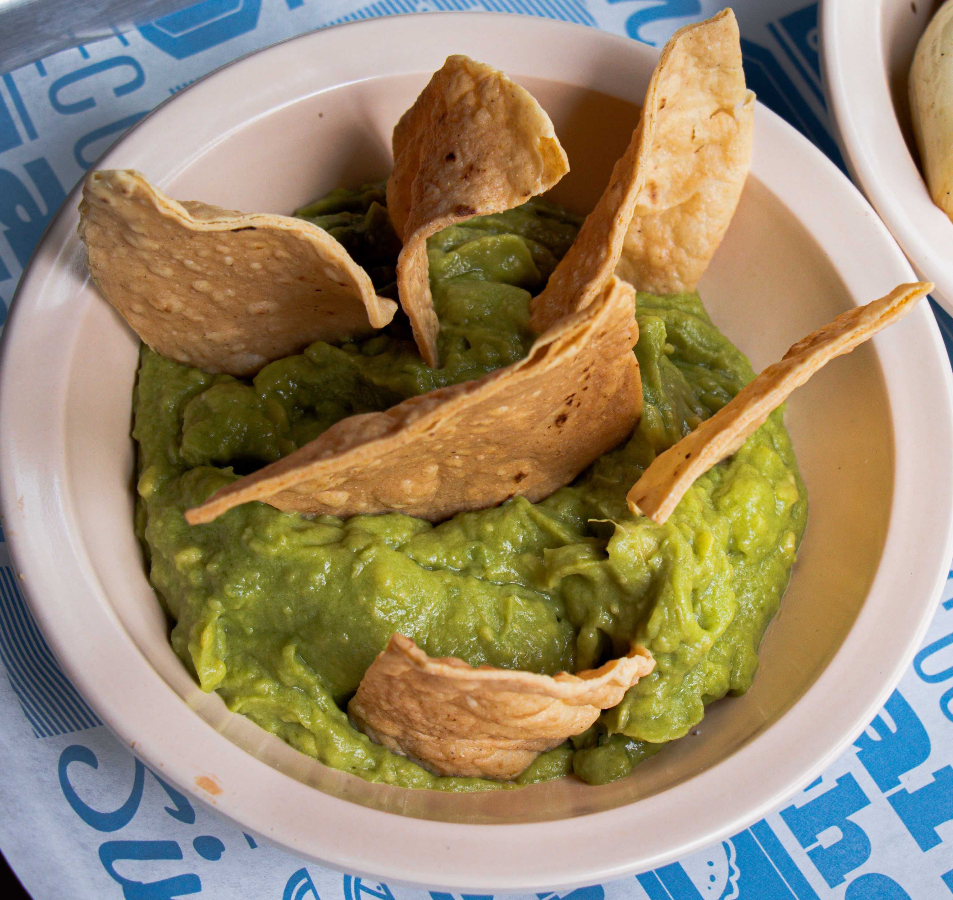 Tortilla de harina gigante con un toque de guacamole, frijoles charros, pimientos y exquisito queso gouda gratinado