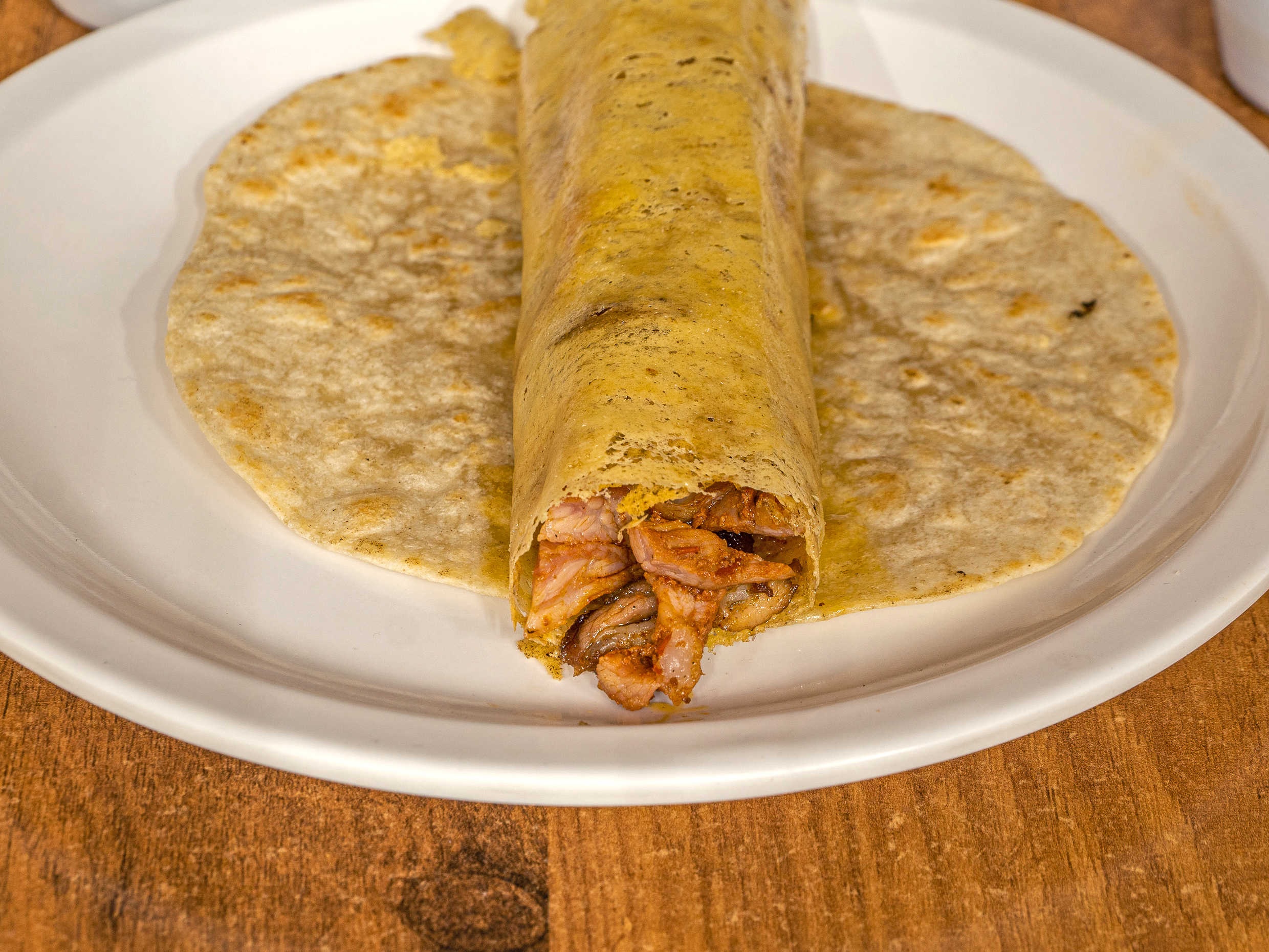 Carne al pastor, queso gouda y tortilla de harina