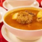 (800 ML) DE MONDONGO DE RES AROMATIZADO CON ESPECIAS ,ACOMPAÑADO DE CEBOLLA CON CILANTRO, GARBANZO, PAPA ARROZ BLANCO,TORTILLAS DE MAIZ(4 PZAS.) Y SALSA HABANERA TATEMADA