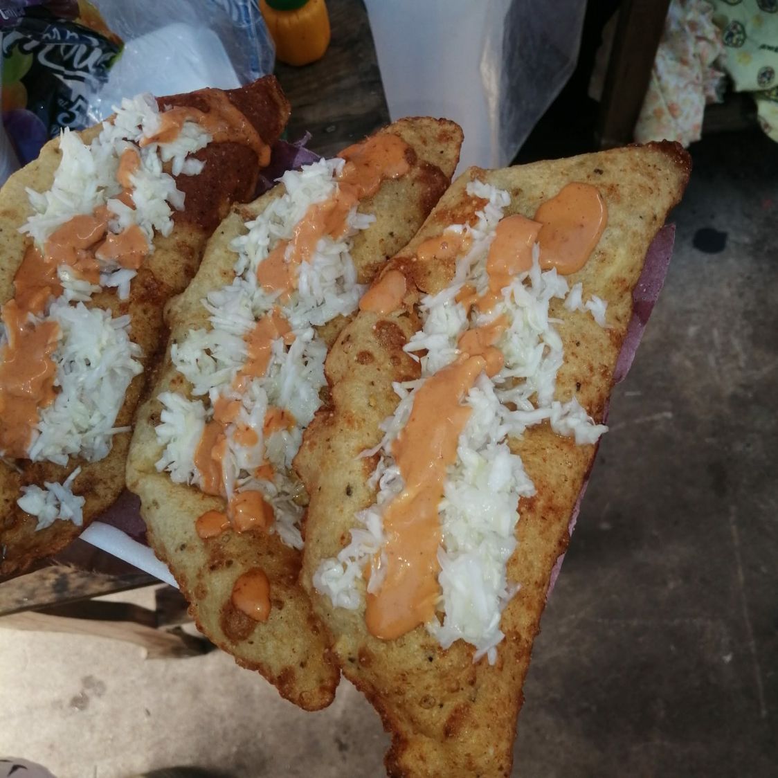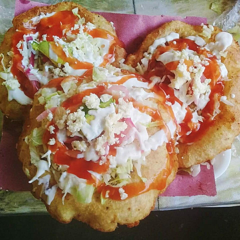 Salbute de pollo, preparado acompañado de salsa