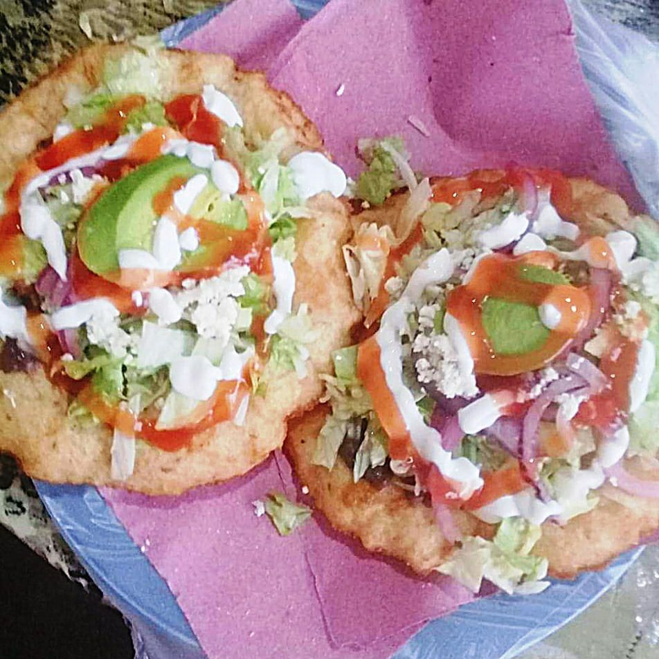 Salbute de carne preparado, acompañado de salsa
