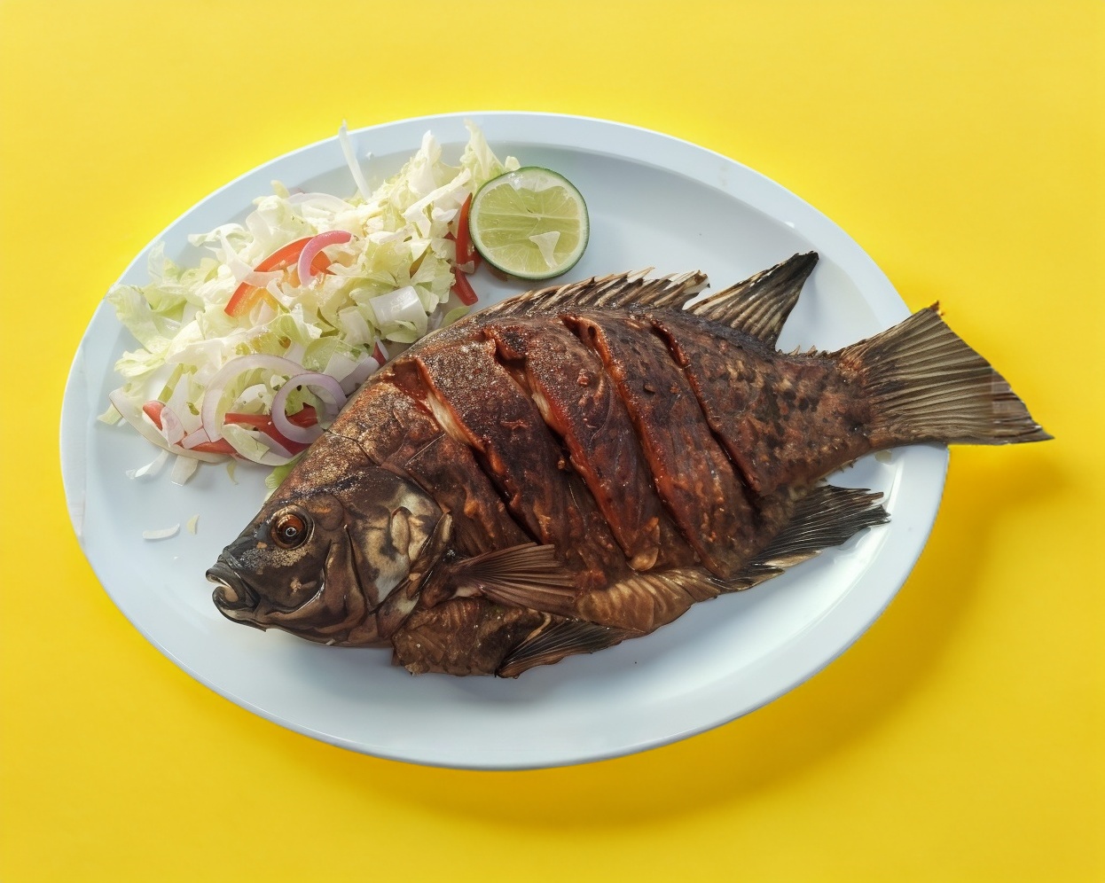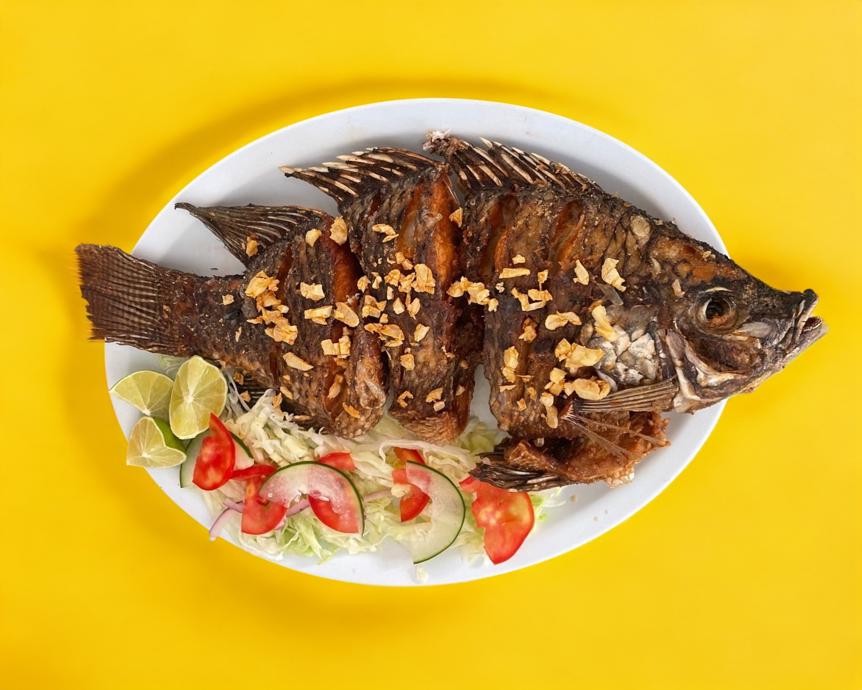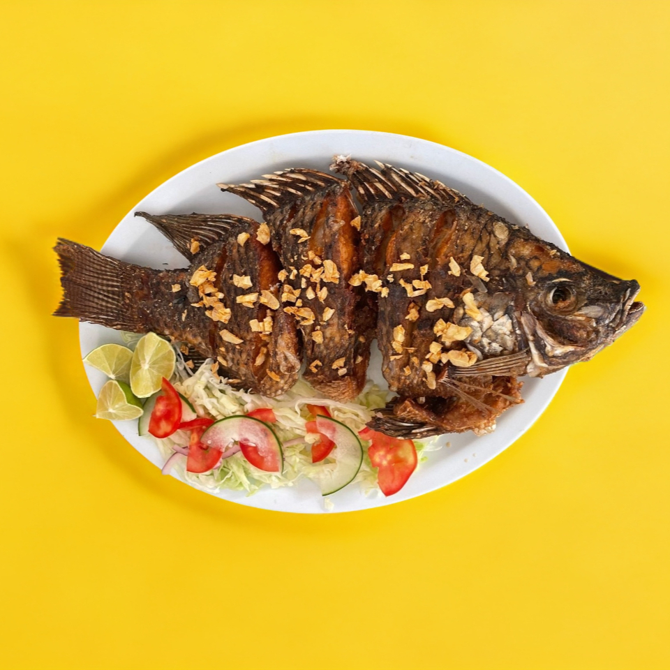 Mojarra frita acompañada con ensalada