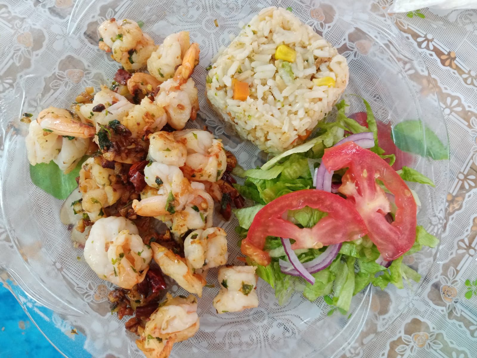 chile abanero,cebolla morada,pepino,limon y camaron