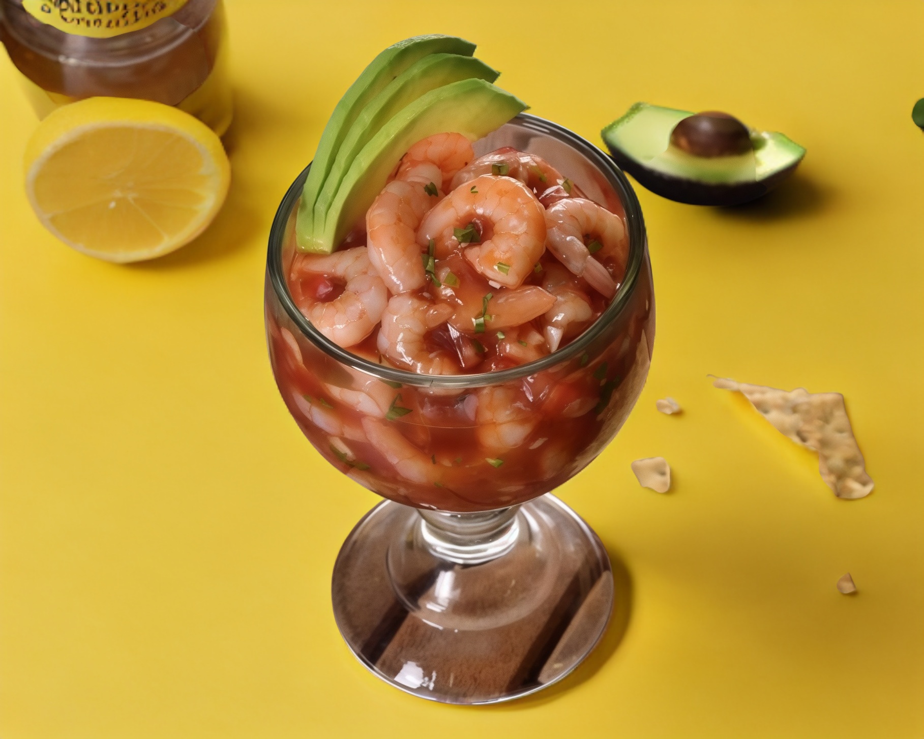 Cóctel de Camarón con sus respectivos acompañamientos