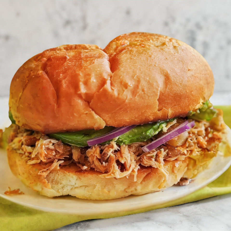 Torta de Pollo con Lechuga, Jitomate, y Cebolla