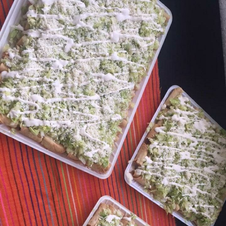 3 Piezas con lechuga, crema, queso y salsa de tomate.