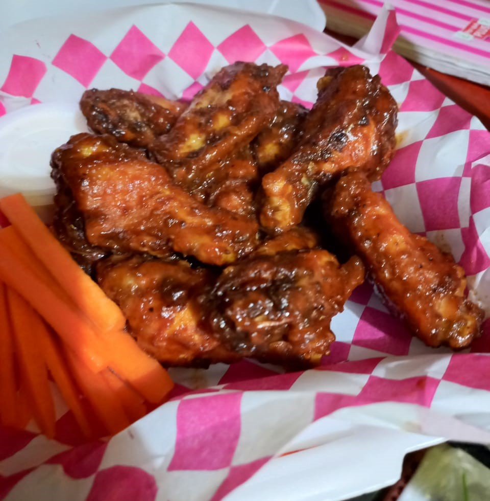 10 piezas (550 gramos), 1 salsa a elegir, 1 dip ranch, zanahoria.