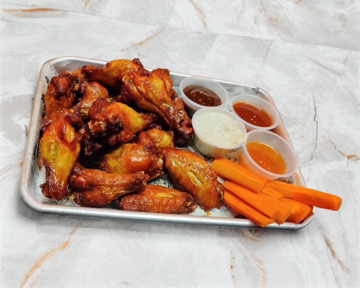 1/4 Boneles acompañada de una salsa y aderezo ranchs. Acompañadas de papas ala francesa.
